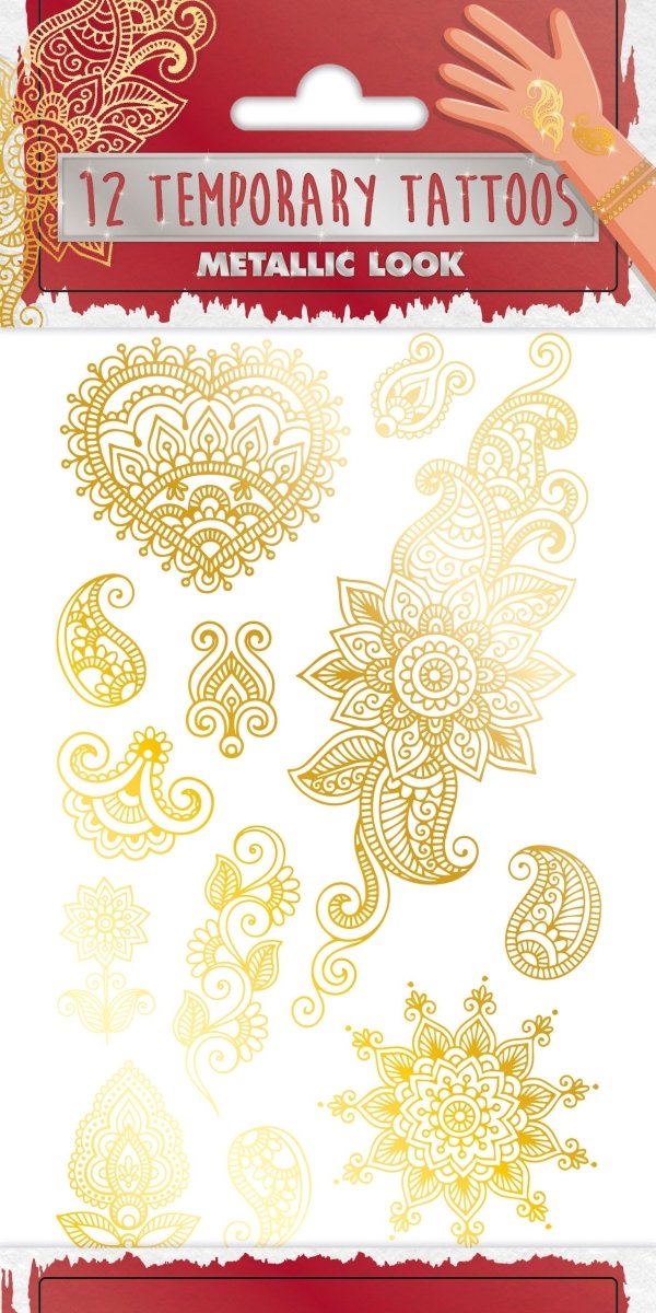 Hol dir den Sommer auf deine Haut mit unseren temporären Metallic Tattoos! Verleihe deinem Look einen Hauch von Glanz und Funkel und genieße die Aufmerksamkeit, die dir die Blicke anderer schenken werden. Lass dich von den warmen Sonnenstrahlen und dem Schimmern des Sommers verzaubern. Perfekt für Festivals, Partys und den Strand!