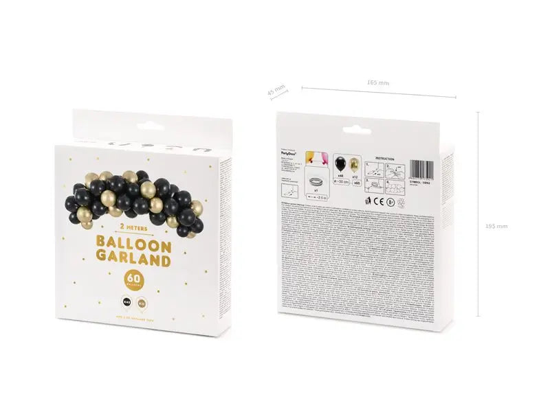 QUANTITÉ : 60 PIÈCES (Noir, or / + ruban de 2,5 m) TAILLE ENVIRON. 2 MÈTRES UNE FOIS INSTALLÉ